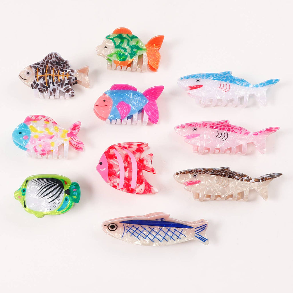 Add a splash of ocean fun to your hairstyle with these marine animal - themed hair clips! Featuring cute tropical fish ,sharks and sardine in vibrant colors, they're perfect for bringing a playful, seaside vibe to your look.