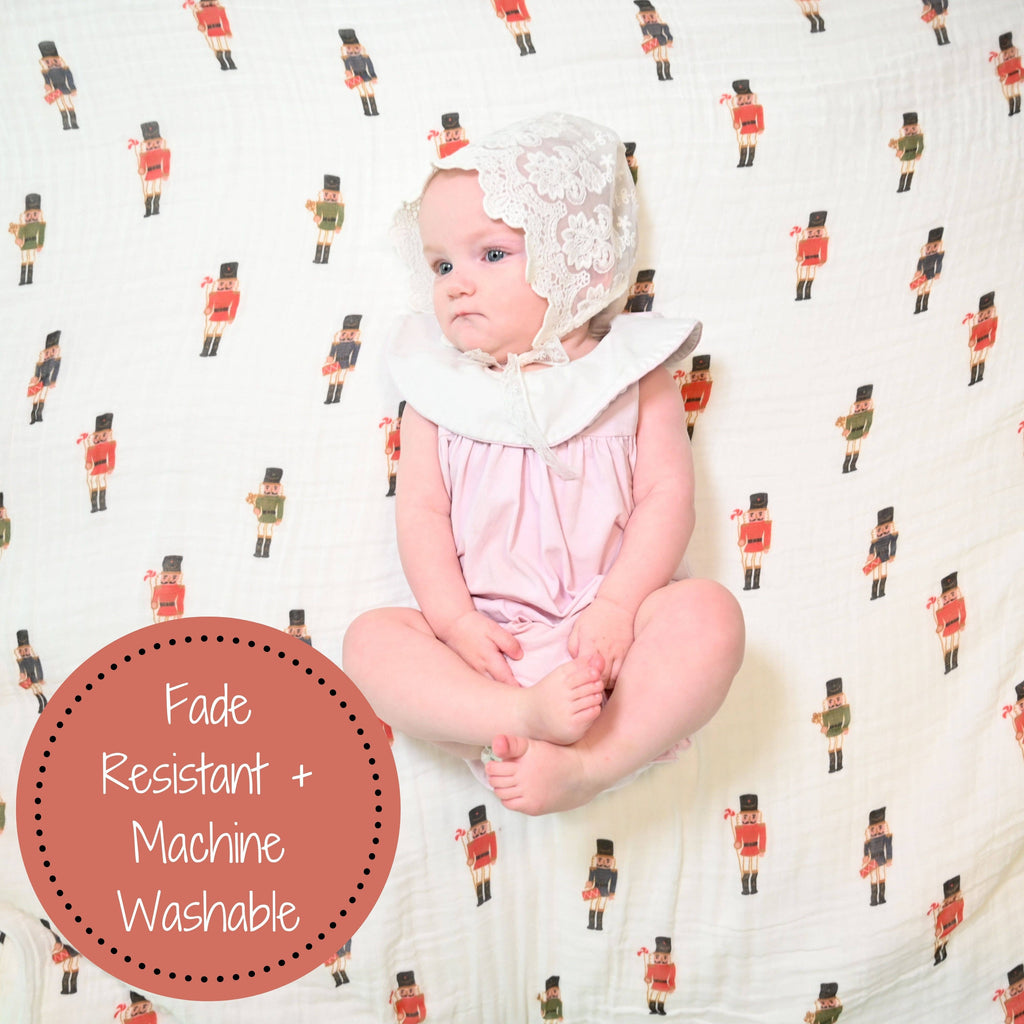 * SOFT AND COZY SWADDLING BLANKET - Wrap your little loves in LollyBanks extra soft 100% cotton muslin swaddles to make your baby feel safe and secure. Each 47x47 blanket provides enough space to snuggly and securely wrap your newborn as well as provide comfort through the toddler years. HOLIDAY NUTCRACKER PRINT - Love all things nutcracker around the holidays? This nutcracker soldier swaddle is perfect for keeping in the nursery or using as a stroller cover for your baby. Moms and dads will love receiving these as a baby shower gift or welcome present. * BREATHABLE AND LIGHTWEIGHT - This swaddle is made from high-quality 100% cotton muslin fabric giving you peace of mind knowing that you are wrapping your baby in a breathable yet durable blanket that will stand the test of time and will save as a keepsake for years to come!