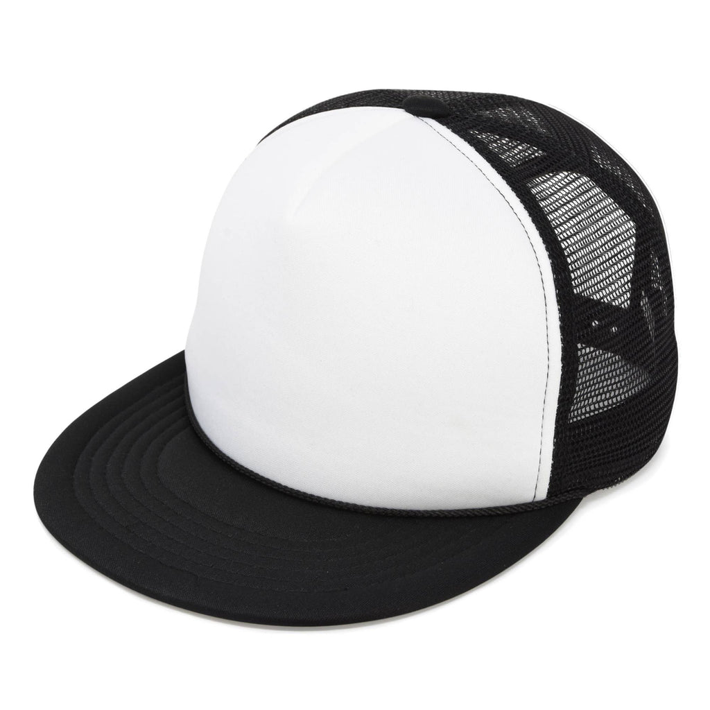The Newest Rollout from the DALIX hats and caps collection. This Flat Billed Trucker Cap has a mesh back, and poly foam front. It’s a snapback closure adjustable to fit almost any head. This Hat Diameter is 7.25", the Length with Bill is 11", and the Height is 4.25".