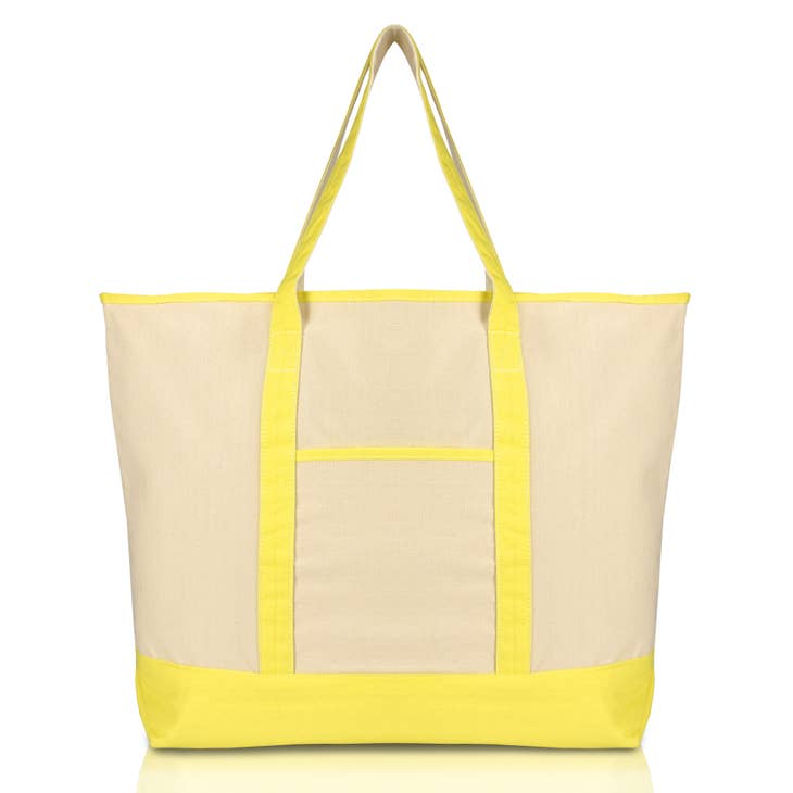 DALIX 22" Open Top Heavy Duty Deluxe Tote Bag Outer Pocket. Simple but yet durable: this tote is perfect for any occasion to carry all your shopping needs. This bag is suitable to carry on you for days out at the beach, grocery shopping at the market, or simply going to work. If you're a student or teacher, it'd be perfect for your class with when carrying textbooks and folders! It is also perfect as a gift bag for weddings, birthdays, christmas and holidays to your friends, family, or even if it is a special gift to yourself. This tote features a heavy duty 12 oz. cotton canvas material with a zipper closure for safety when you travel to ensure your accessories and belongings don't fall out. There is also a front pocket for accessories storage, and comes in more wonderful colors! For those on a budget but still wanting a quality product, this is a great gift under 20 dollars which will last for time to come.