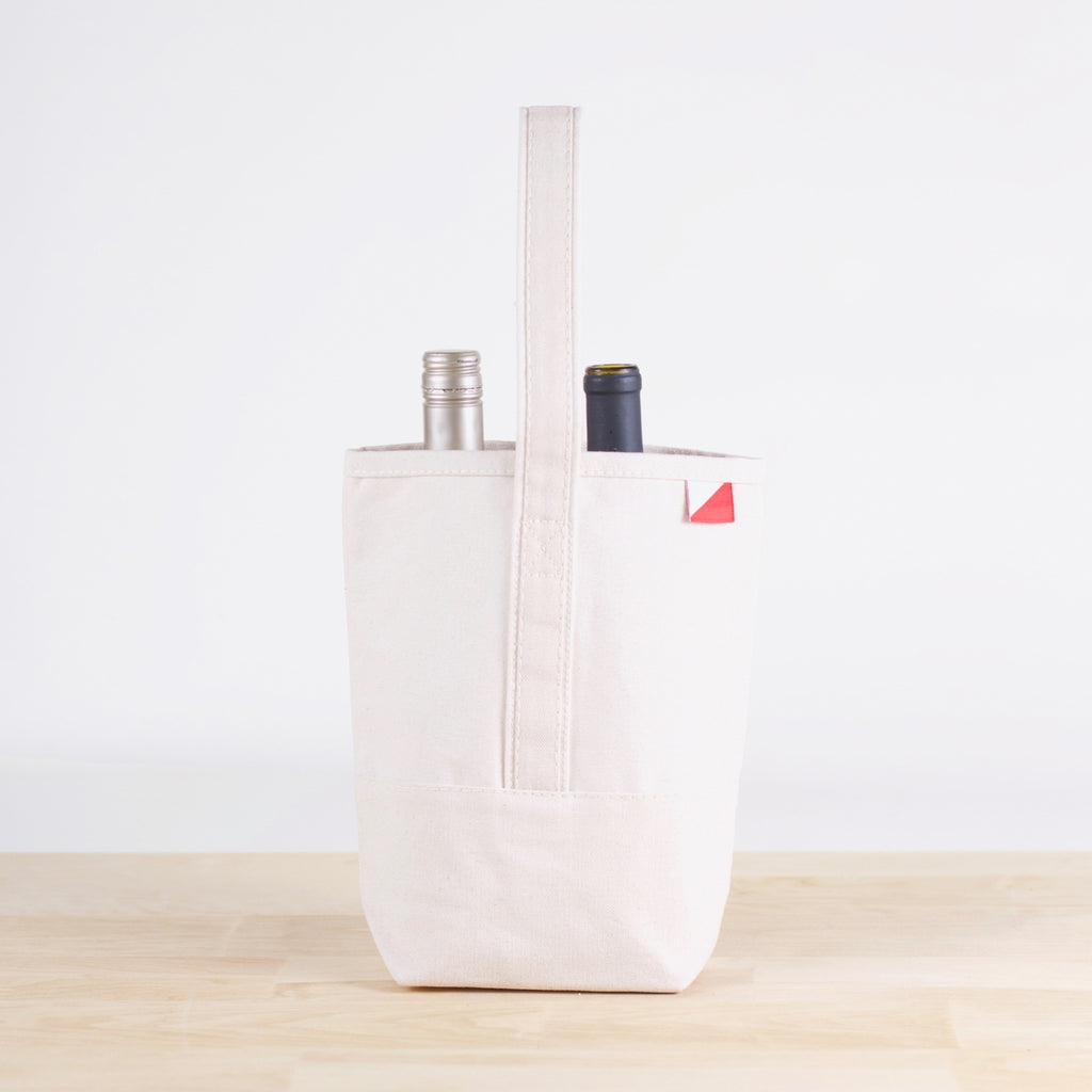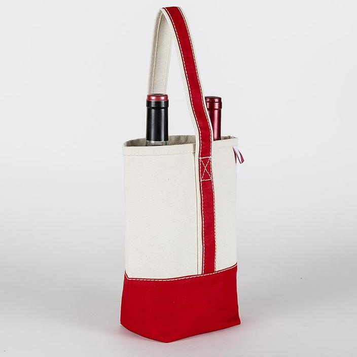 No need for gift wrap, this wine bag holds two bottles of wine for a beautiful presentation. Made of heavyweight cotton canvas, this bag includes a cotton piece that Vecros in place to keep the bottles from clanking but is also easily removable for monogramming. Works beautifully for host gifts, corporate events, and celebrations, wine not included!