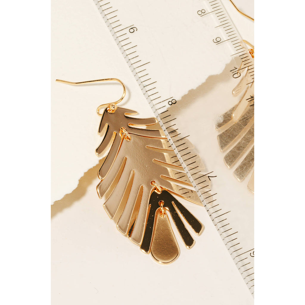 This piece is designed to be both stylish and functional, this pair of dangle earrings brings a one-of-a-kind glossy metallic monstera leaf design. Perfect for adding some personality and flair to your wardrobe, this accessory is a must-have. Available in GD and RH. This item is sold in packs of 2.