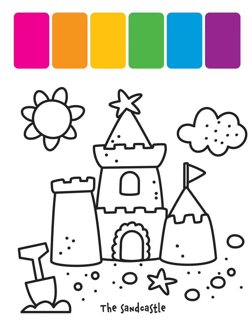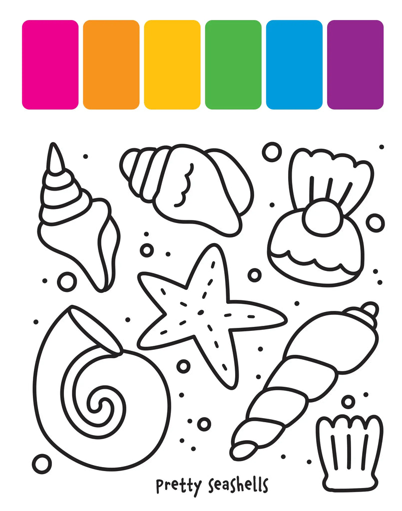 Just add water! This fun (and mess free!) paint with water activity book for kids features super cute ocean creatures and scenes. All kids need to do to begin his or her watercolor masterpiece is add a little water to one of the 6 colors found on the palette located on each page and begin painting. Colors can be blended or kept within the lines of the design. Designs include a seagull, lighthouse, crab, whale, sandcastle. The palette is perforated and can be removed from the art when finished for display. Each full page is also perforated for easy removal.