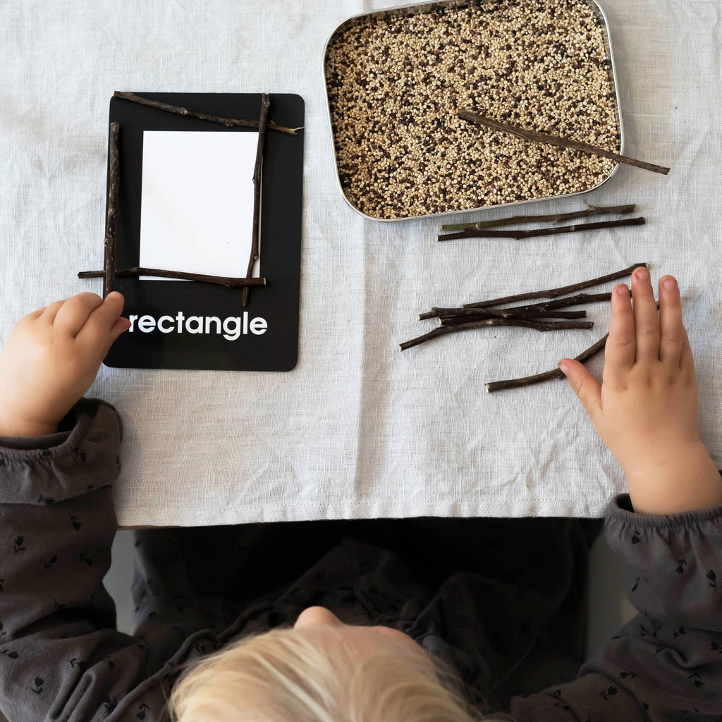 Our Shapes Flashcards have a total of 24 double-sided cards, all at the same great value as our number cards. The world is made up of so many shapes and, as a child, it’s fascinating to discover them. The Shapes Flashcards pack includes 24 double-sided Montessori style 2D and 3D shapes and shapes to trace, all designed specifically to help learn and recognize the number of sides on each shape.