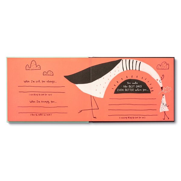This heartfelt keepsake features a mix of sentimental and playful prompts, such as: