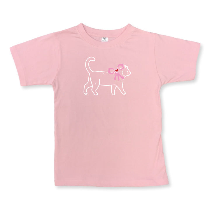 Our cat valentine design is hand screened in on a red short sleeve t-shirt.