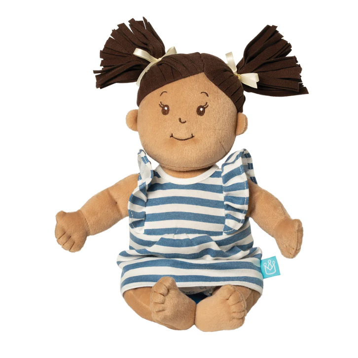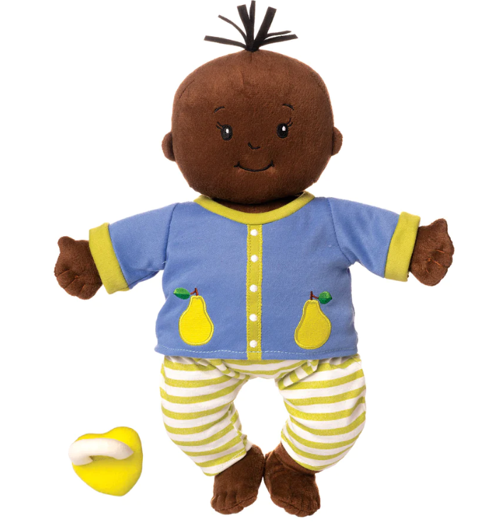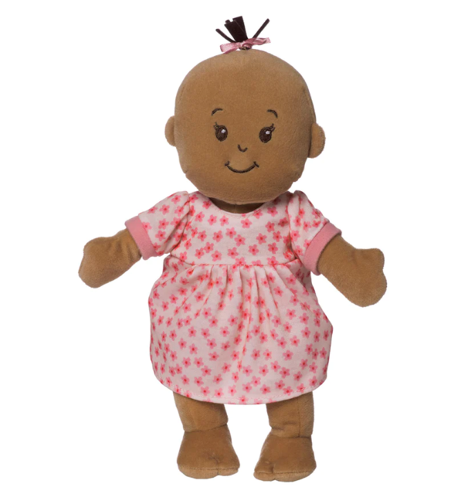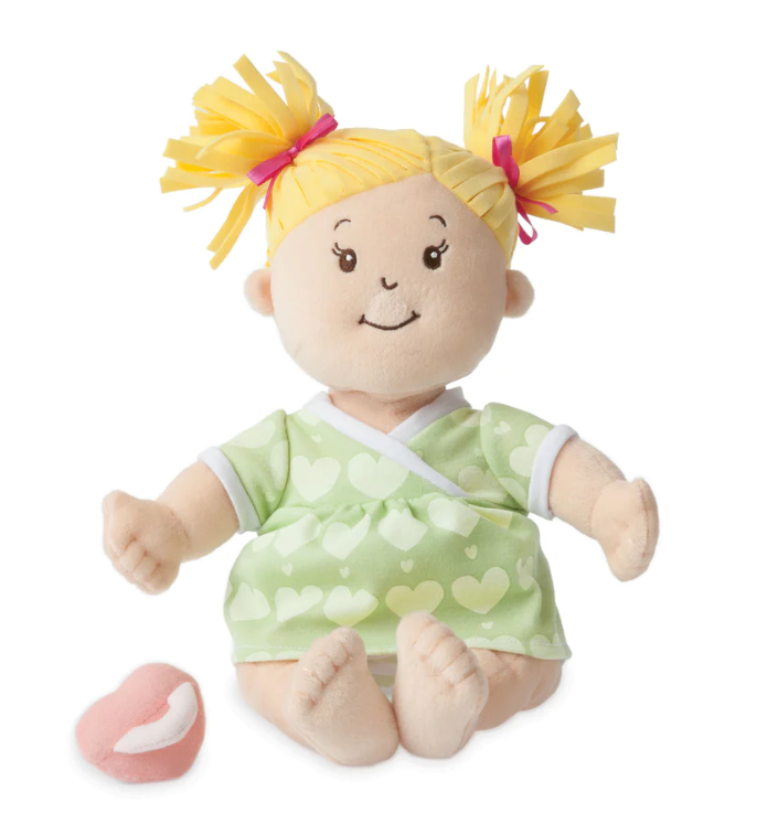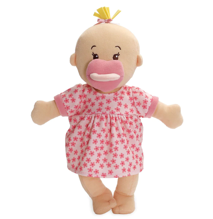 Wee Baby Stella is a perfect first baby doll. Soft baby doll play fosters nurturing skills through role play. The 12 inch peach Wee Baby Stella doll is completely soft and beautifully crafted with lifelike details such as a belly button and perfectly plump tummy and comes with a magnetic pacifier.